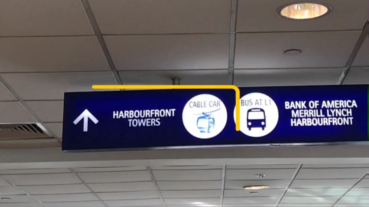 Sentosa cable car entrance. Alight at Sentosa Cover Villages drop off point. This line is 890 meters long and has 51 eight-seater cable cars of cabins. The current Sentosa Cable Car ticket is astronomically expensive at SGD 2600.